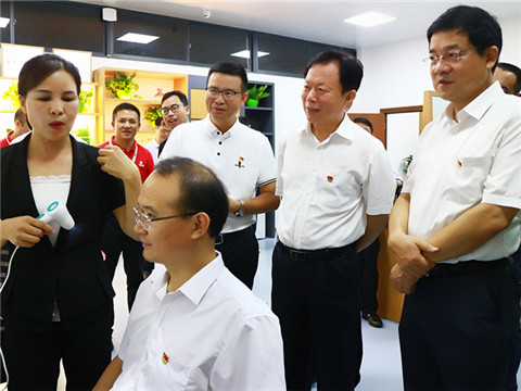 2018年8月17日上午,自治區(qū)黨委常委、統(tǒng)戰(zhàn)部部長(zhǎng)徐紹川同志率領(lǐng)市委常委、統(tǒng)戰(zhàn)部部長(zhǎng)趙紅明,區(qū)黨委統(tǒng)戰(zhàn)部部務(wù)委員、廣西中華職業(yè)教育社專職副主任馮華清,經(jīng)開(kāi)區(qū)黨工委委員、紀(jì)檢監(jiān)察組組長(zhǎng)趙大標(biāo)等一行16人,到和桂集團(tuán)調(diào)研指導(dǎo);并到源生堂商學(xué)院進(jìn)行參觀、體驗(yàn)。和桂集團(tuán)總裁、源生堂總經(jīng)理黃偉文、源生堂執(zhí)行總經(jīng)理舒志華等公司領(lǐng)導(dǎo),熱情接待了調(diào)研組一行。