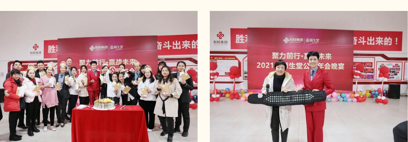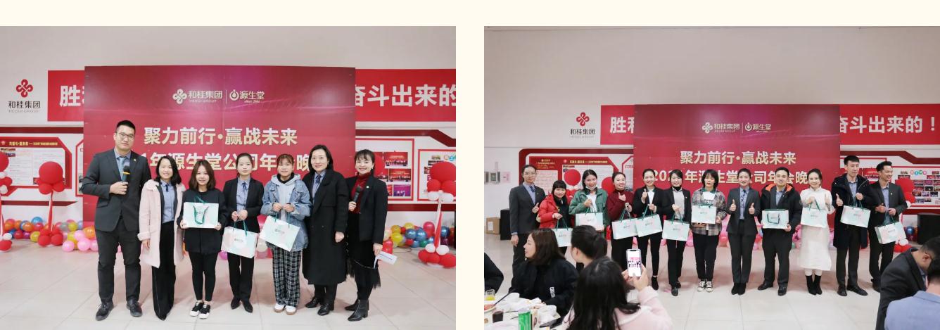 精彩的節(jié)目落幕,一場屬于源生堂家人的迎新家宴溫馨開宴。高舉的酒杯里、搖曳的生日燭光、豐厚的獎品,盛放的是源生堂家人真摯的情懷、堅守的信念、不變的夢想,以及繼續(xù)前行的熱望。